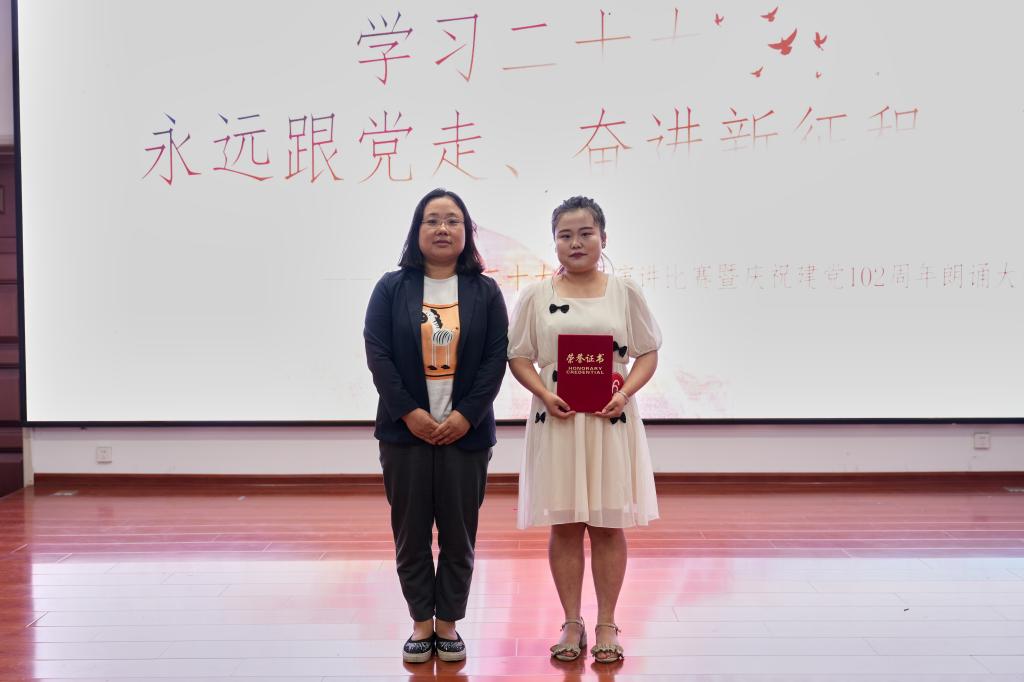 本次比赛,共有来自各二级公司、朗诵社、广播站、国旗护卫队、礼仪队等单位和员工组织39支代表队参赛。经过初赛选拔,12支代表队进入决赛。决赛现场,选手们用生动的语言,声情并茂、激情昂扬的演讲表达着对祖国母亲的真挚情感,深深感染了在场的每一个人,赢得评委和观众的阵阵掌声。最终经过激烈角逐,小教2216班范雨菲获得一等奖,汉语2104班杜天宇、护理2202班张奕彬获得二等奖,小教2211班郝静雅、护理2202班孙祥、朗诵社任盈盈获得三等奖。