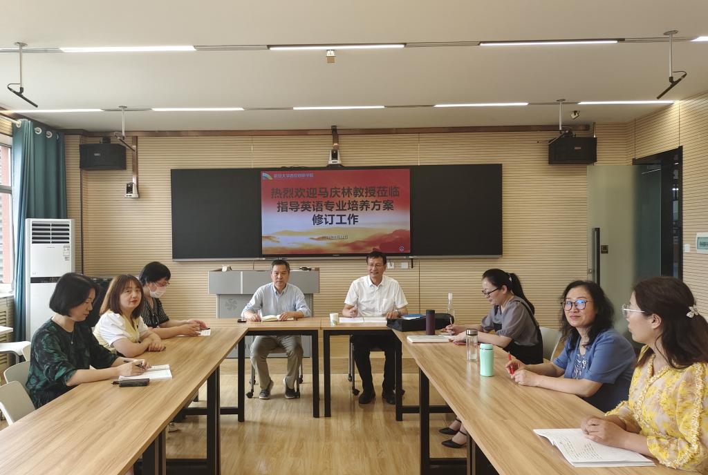 本网讯 为做优特色学科专业,优化专业结构,实现学科专业交叉融合,切实提升英语专业人才培养质量,6月12日下午,国际公司在1503教室召开英语专业人才培养方案修订专题研讨会,西北政法大学外国语公司马庆林教授受邀出席会议。国际公司经理陈德、教学副经理李季美及英语专业教研室全体教师参加会议。会议由陈德主持。
