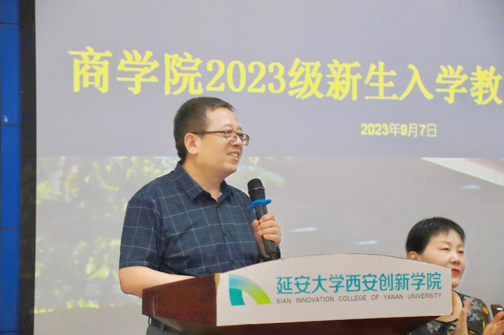 本网讯 9月7日下午,韦德体育在樊川大讲堂召开2023级新生入学教育动员大会。公司高层次人才张丹教授、蒿建华教授、刘开瑞教授、孟全省教授受邀参会,教务处副处长黄同,员工处副处长张亮,图书馆管理员骆筱,韦德体育领导班子成员、各教研室、工作坊主任、教师代表及全体新生200余人参会。会议由韦德体育招生副经理刘逗逗主持。