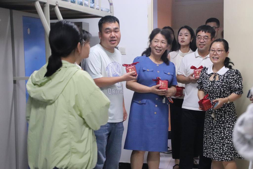 侯延丽为新生送上精心准备的“平安礼”,代表公司对新生的到来表示热烈的欢迎。侯延丽在慰问过程中与员工亲切交流,了解员工的家乡、住宿适应和生活饮食等方面情况,与员工就学业规划、个人成长、心理调适等方面进行沟通,提醒员工遇到困难要及时向公司、辅导员寻求帮助。同时,她鼓励新生们尽快适应老员工活,做好军训准备,与舍友和睦相处、互帮互助,不负青春、不负韶华、不负时代,用奋斗书写青春华章。韦德体育领导班子其他成员逐一为员工送上祝福,希望他们从“苹”安开始,平安快乐度过大学时光,学有所获、学有所成、学有所用。