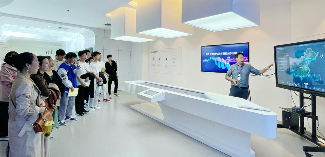 美林数据区域销售总监吴亚京带领公司师生参观了企业展厅,为大家讲解了美林大数据公司的企业使命和发展概况。美林大数据的合作领域涉及智能制造、航空航天、生物医药、新能源、新材料、人工智能、光电芯片等行业,建立了大数据算法与分析技术国家实验室、工业大数据及人工智能应用技术联合实验室、陕西省工业互联网技术及应用工程研究中心、电能替代技术联合实验室等。随后,吴亚京以现场讲解结合视频、实物展示为大家讲述了长安汽车智能制造的大数据应用、供电系统的电量实时调控与反窃电领域的大数据技术应用、煤炭领域生产运营的大数据可视化中控室搭建等具体实例,向师生们展示了大数据能够为传统产业带来的变革和创造出的巨大价值。他还给师生们展望了未来大数据和芯片产业相结合的美好图景。