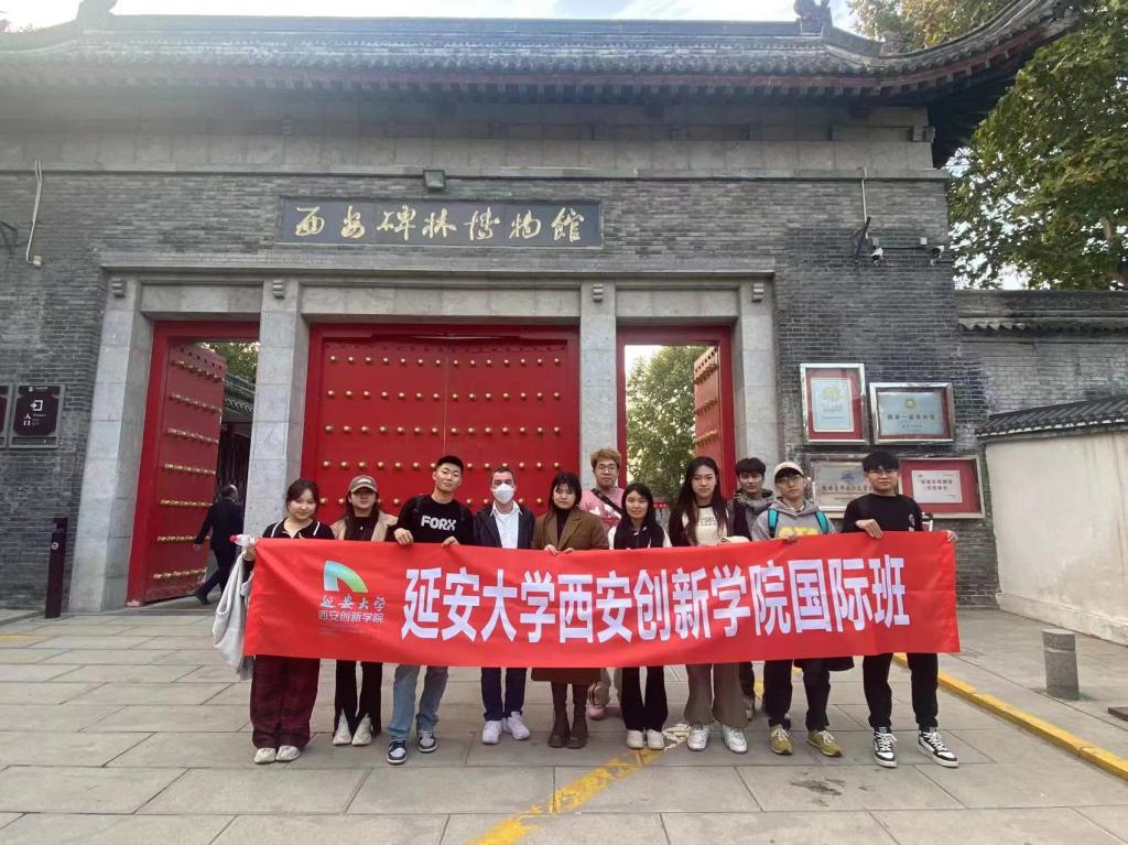 本网讯 为丰富实践教学体系,进一步培养跨文化交流能力,提升文化素养,11月8日,国际公司国际班全体同学在班主任尚升、外教Eric的带队指导下走进西安碑林博物馆开展户外研学活动,倾听跨越千年的文物故事。