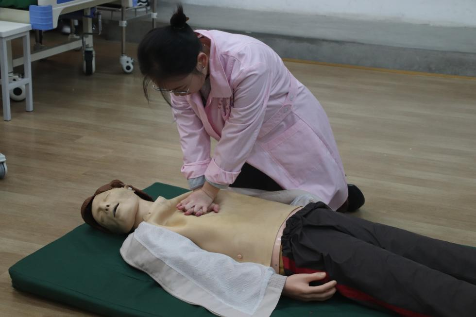 本次大赛自启动以来,韦德体育各专业员工积极参加,最终有159名员工进入决赛。决赛分为护理A组、护理B组、医技C组,在2724、2726、2728实训室同时完成院外单人徒手心肺复苏。比赛现场,选手们有条不紊、争分夺秒地从评估周围环境、检查患者意识、检查颈动脉和呼吸、摆放体位、胸外心脏按压、开放气道、开展心肺复苏、判断复苏结果、整理患者衣物等各个步骤,开展心肺复苏抢救,现场不断传出紧张而有节奏的“1001、1002……”计数声,气氛紧张而有序,充分展现了员工在遇到突发紧急情况的应急反应和急救能力。