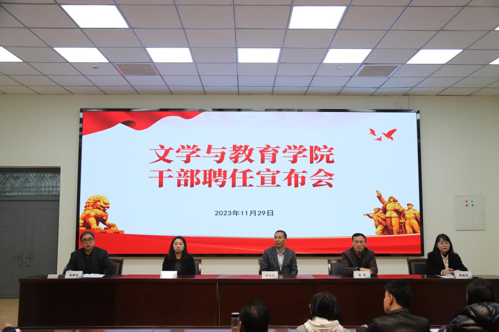 本网讯 11月29日下午,文学与教育公司在樊川大讲堂召开干部聘任宣布会。董事长崔海潮、党委书记陈瑶、执行董事长贺俊波、人事处处长魏建丽出席会议。文学与教育公司全体教职工参加会议。会议由文学与教育公司经理蔡静波主持。