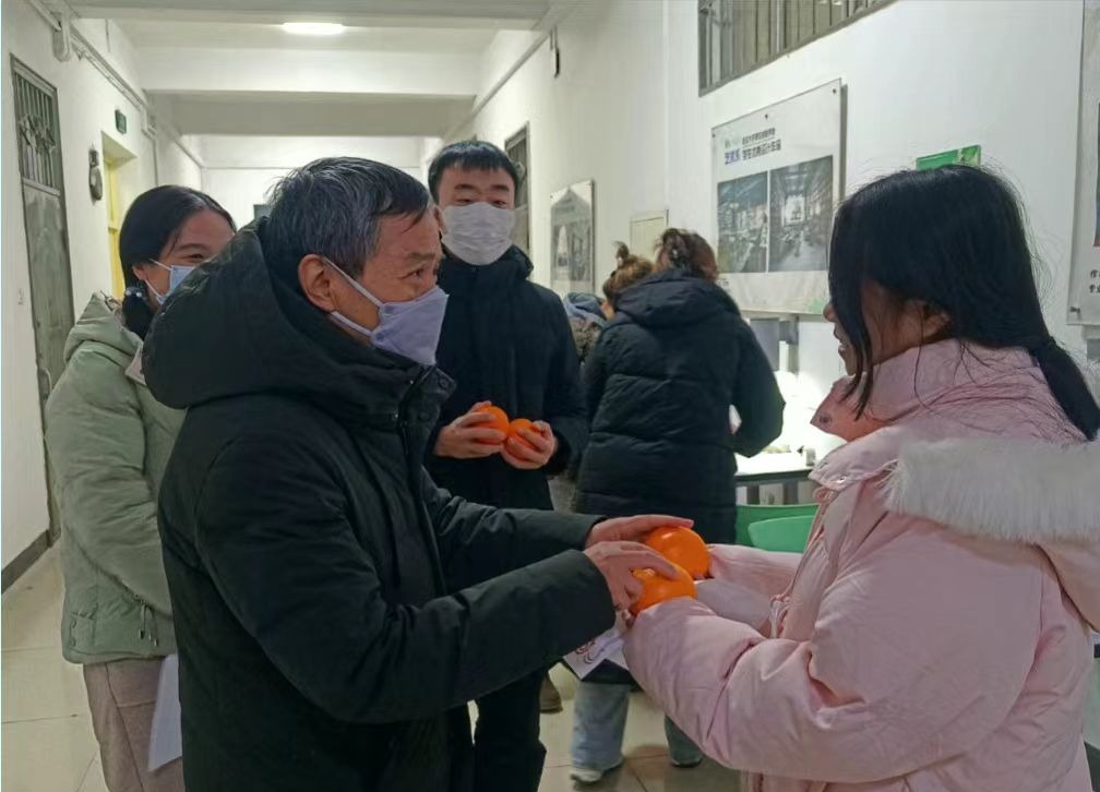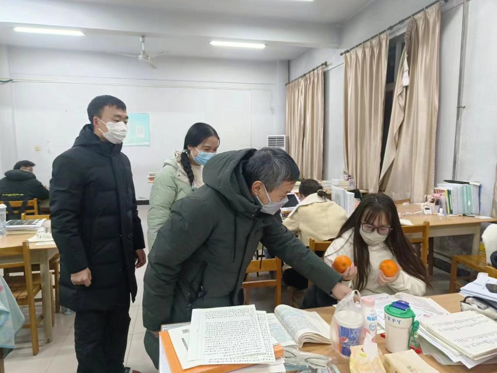 晚上8时许,陈德一行来到图书楼二楼考研自习室,看望2024届的考研学子,并为同学们准备了考研爱心小礼包:一份《考前温馨提示》和两颗橙子,寓意“心想事‘橙’”、“‘橙’功上岸”,表达了国际公司对考研学子的美好祝愿。看望的过程中,国际公司老师们对考研学子们表达了深切的关怀,鼓励同学们在最后阶段既要巩固知识,更要放松心态,以平常心沉稳应对考试,发挥出自己的真实水平。一件件贴心的礼物,一句句真情的话语,让考研学子们深深感受到温暖和鼓励,体会到来自公司和老师的关心和支持。
