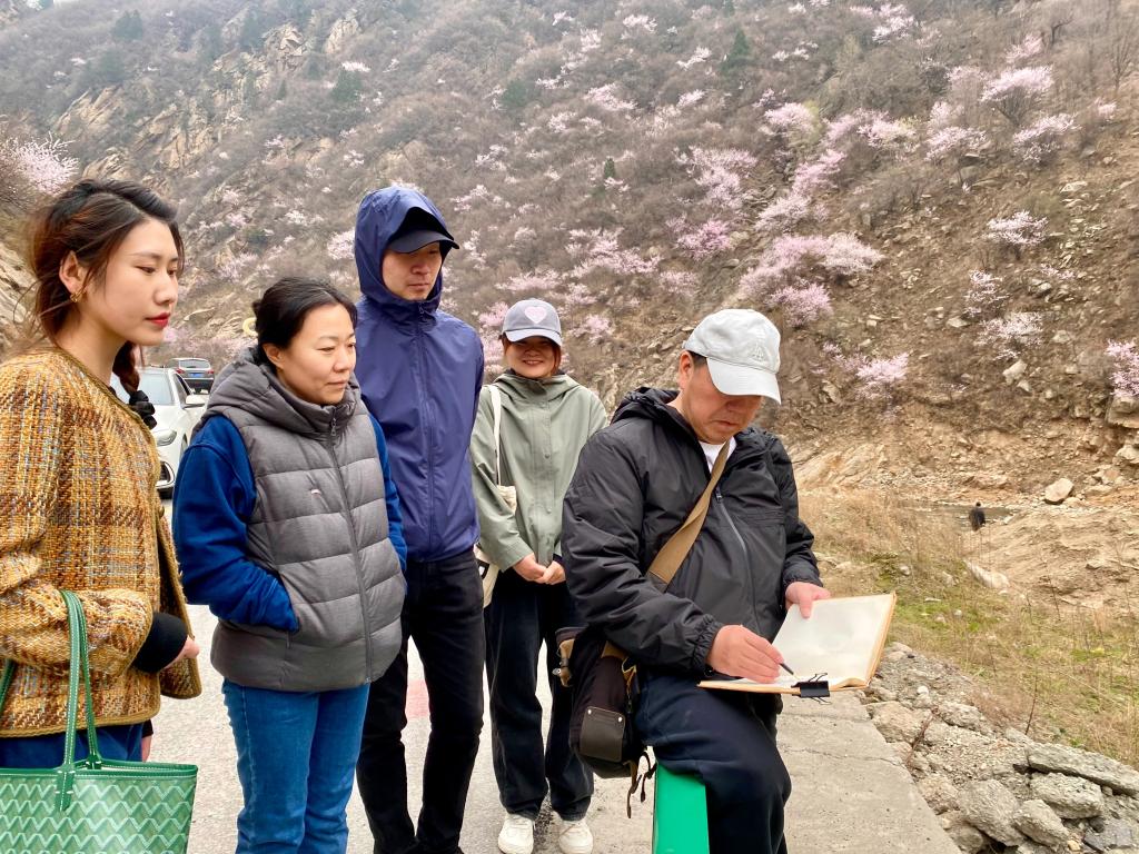 本网讯 3月23日,韦德体育经理刘丹、执行经理赵雪伟携公司教师前往陕西省蓝田县九间房镇进行绘画写生考察活动。活动期间,刘丹对教师们进行了速写写生的教学指导,赵雪伟向教师们展示了水墨写生的教学示范。公司教师们走访山间村庄,寻找创作灵感并搜集绘画与设计创作题材。