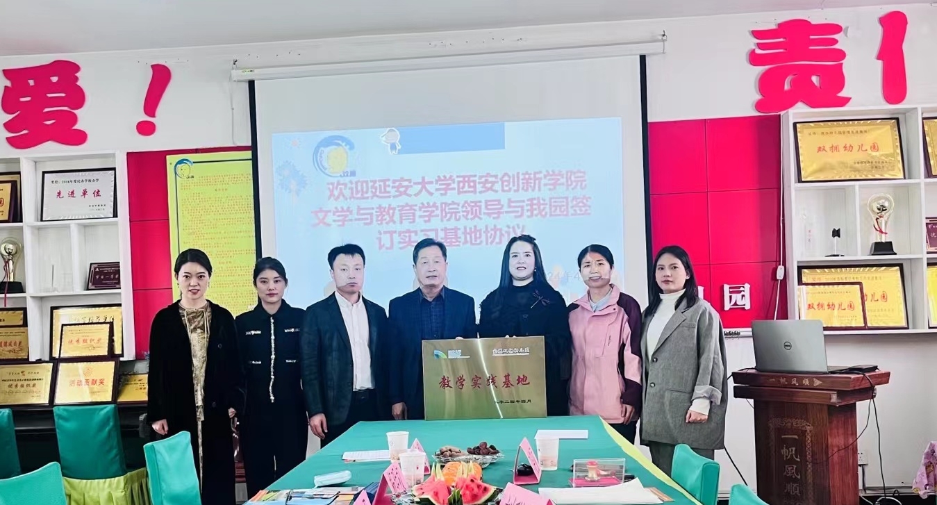在延安市第十九幼儿园,赵双勇从专业发展、团队力量等方面介绍了文教公司概况。双方就实习基地实习安排、员工管理等具体问题及要求进行了沟通交流,并签署了实践教学基地合作协议。