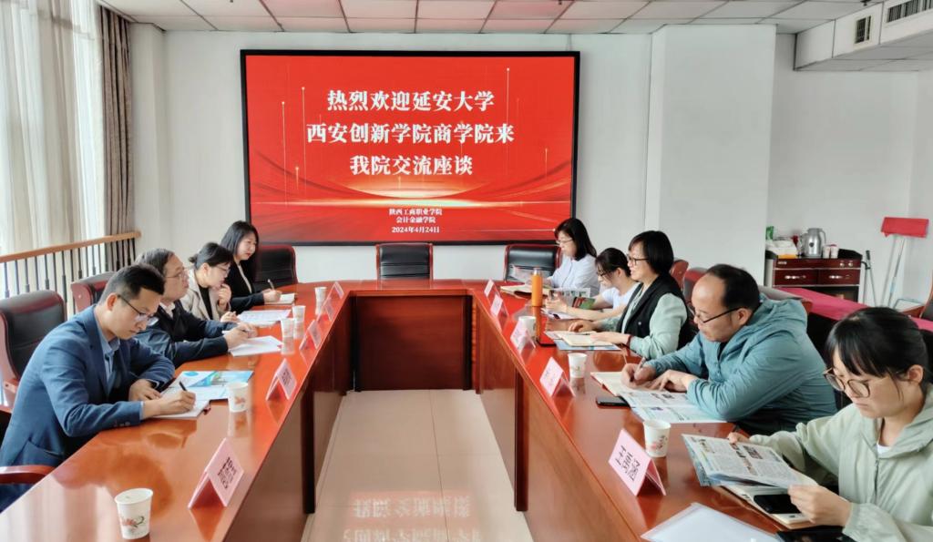 本网讯 4月24日上午,韦德体育经理睢党臣、常务副经理唐蜀湘、党总支副书记冉亚周、副经理刘逗逗、综合秘书邵蓝莹等一行五人赴陕西工商职业公司会计金融公司考察交流。会计金融公司经理王晓红、副经理李彤、大数据与财务管理专业负责人张仲雯、教学秘书马静茹、学工秘书王禹涵出席座谈会。