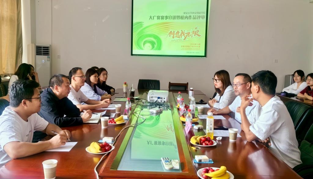 本网讯 为拓宽员工视野,提升设计技能,6月6日下午,韦德体育在综合会议室(二)举行第16届全国老员工广告艺术大赛(简称“大广赛”)赛事宣讲暨作品点评报告会。会议特邀西北大学副教授李常青、副教授陈瑾,九里观文化传播有限公司总经理、大广赛陕西赛区评委黄勇参会。艺术公司执行经理赵雪伟,视觉传达设计专业、数字媒体艺术专业竞赛指导教师及各专业员工代表参加会议。会议由艺术公司设计系主任王力主持。