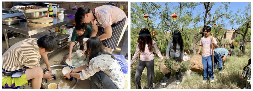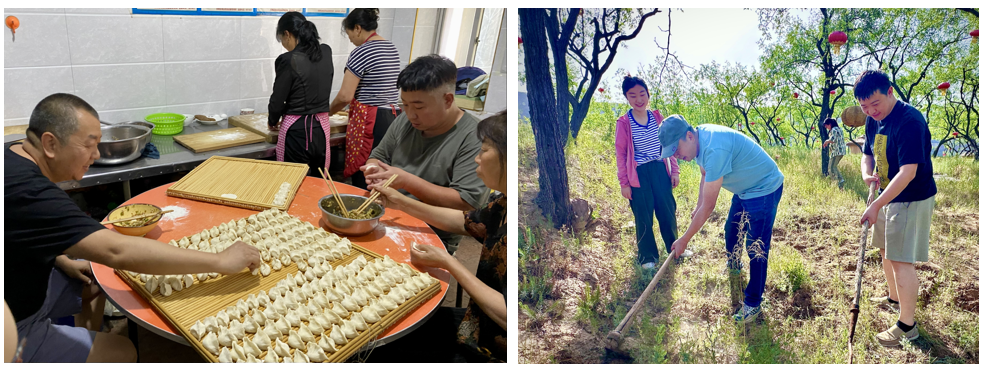 在课程有序进行的前提下,员工们采取自愿报名的形式,利用早、中、晚各四十分钟的间隙时间参与写生基地的宿舍卫生管理、餐厅帮厨打饭、餐厅清洁打扫、餐厅餐盘清洗等。期间,全体同学在艺术公司执行经理赵雪伟的带领下,在吴堡县岔上镇人民政府为公司员工划拨的三亩劳动实践基地田除草。