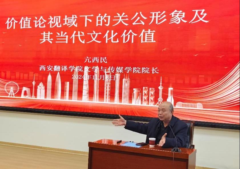 讲座中,亢西民教授详细阐述了关公形象的三个主要方面:“忠义仁勇”的核心价值观、作为民族精神的象征以及在民间信仰中的地位。他分析了在历史传说和文学创作语境,民间祭祀、信仰语境,海内外华人工商贸易语境,武林江湖语境,官方意识形态语境等五种语境中关公及关公形象在接受过程中的受众和价值尺度。最后,他解析了关公形象的阐释策略和当代文化价值。他强调,关公的形象蕴含了一种深沉的家国情怀和道德理念,这种价值观在当今社会依然具有重要的启示和教育意义。