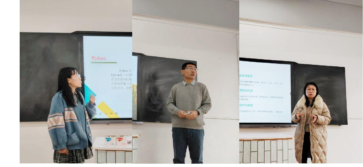 交流会上,薛冰心、王晓媛、靳晓昀三位教师结合个人所学,针对Python程序设计基础、Python在财务及企业管理中的应用作了详细介绍,帮助大家对Python在各个领域的比较优势以及如何快速入门提升Python的运用技能有了基本的理解和认识。马江指出,当今世界数字化进程不断加快,发展日新月异,为更好地顺应时代潮流,避免出现本领恐慌,每位教师都要提高培养数字素养的意识,不断掌握研究数字经济的能力。