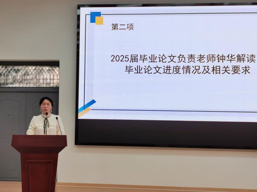 2025届毕业论文负责教师钟华详细介绍了毕业论文的各个时间节点和具体要求,解答了同学们在论文写作过程中遇到的常见问题,为同学们顺利完成毕业论文提供了科学、系统的指导和支持。