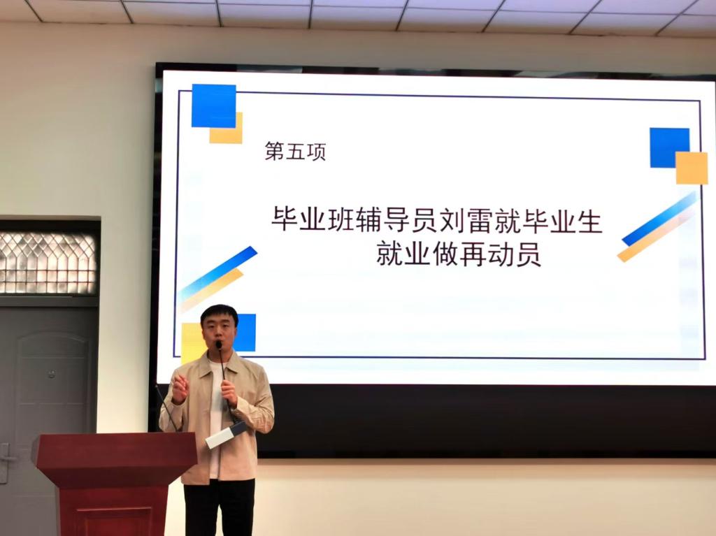 刘雷就毕业生就业进行了再动员,他分析了当前的就业形势,鼓励同学们积极就业,并介绍了公司提供的就业服务和资源,为同学们顺利就业保驾护航。