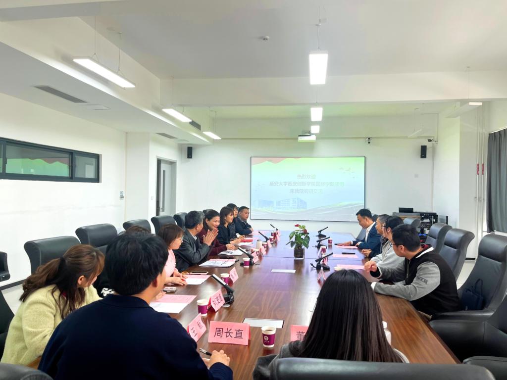 本网讯 3月26日下午,国际公司经理陈德、副经理李季美、党总支副书记刘雷及国际项目负责人尚升一行赴西安建筑科技大学华清公司开展调研。西安建筑科技大学华清公司产教发展部副部长苏佳怡,合作交流中心副主任李莎,人文与艺术公司经理杨延龙、党政办主任季枫、学工办主任刘湜湜等在楼观校区自强楼2244会议室热情接待了公司一行并进行座谈交流。