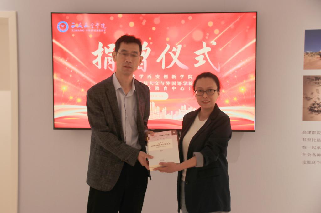 活动最后,刘菲菲代表高建群研究中心向西安航空公司图书馆赠送了4套《高建群研究论丛》(三卷本,共12册)。西安航空公司图书馆馆长刘文哲、采编室主任柴源出席了捐赠仪式。刘文哲表示,此次捐赠活动为两校搭建了宝贵的对话平台,此次捐赠的书籍不仅丰富了公司的馆藏资源,更为师生深入解读高建群先生的作品提供了重要学术资料。