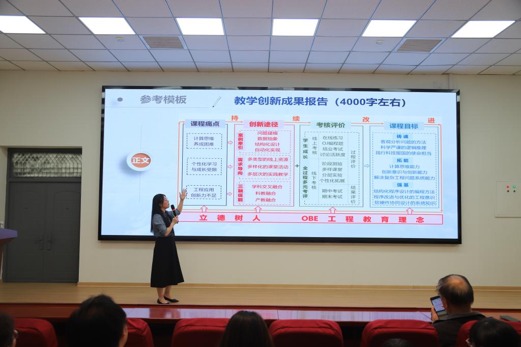 以课程为例,赋能教学创新实践。王春梅围绕其主讲的省级一流课程《高级语言程序设计(C)》,生动展示了如何定位课程概述、明确课程痛点,如何挖掘创新方法与途径、把握创新成效以及更好地展开课程推广示范。她提出,创新需以员工发展为中心,通过重构教学内容、创新教学方法、融入思政元素和数字化手段,实现“知识传授-能力培养-价值塑造”的有机统一,并注重形成可复制、可辐射的示范经验。
