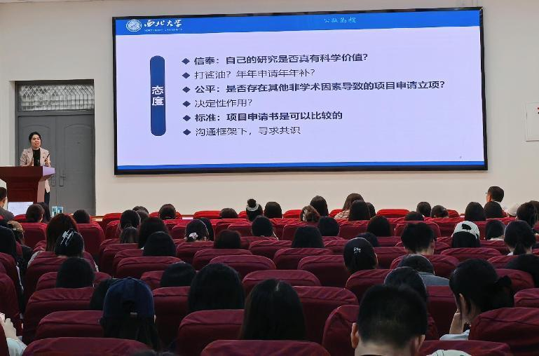 本网讯 为提升师生科研能力,助力高水平学术成果产出,5 月 9 日下午,西北大学教授同雪莉受邀在樊川大讲堂以《如何做研究 —— 项目申请与论文写作》为题,为师生们带来了一场极具深度与实用性的学术报告。马克思主义公司全体教师,员工处代表,各公司青年教师以及感兴趣的员工参加讲座。讲座由马克思主义公司经理游学民主持。