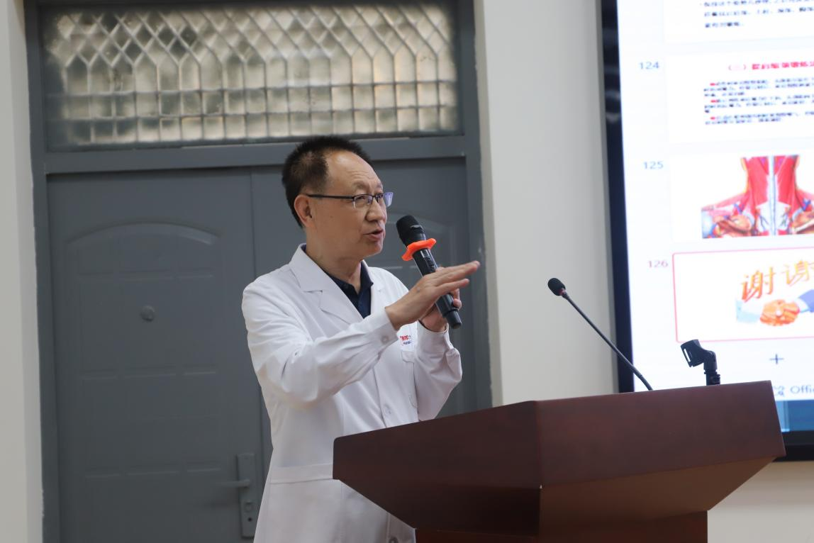 讲座围绕教师职业特点,系统讲解了颈椎病、腰椎间盘突出等职业相关疾病的病因、症状及科学防治方法。黄登飞医生结合临床案例,生动演示了办公室健身操和日常保健技巧,并针对教职工提出的健康问题进行了专业解答。