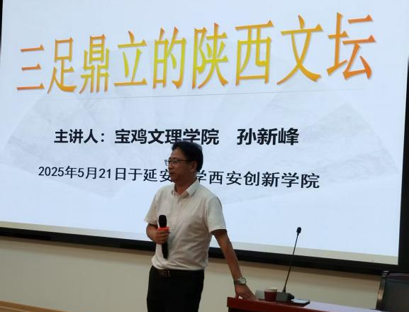 本网讯 5月21日下午,由公司科研处主办,韦德体育承办的“三足鼎立的陕西文坛”科研专题讲座在樊川大讲堂举行。宝鸡文理公司孙新峰教授受邀作为主讲嘉宾。韦德体育经理蔡静波、副经理杨惠栋,教师及员工代表参加讲座。讲座由杨惠栋主持。