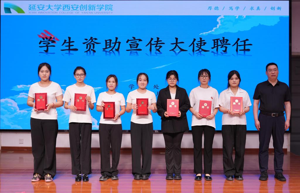 报告会上,赵双勇宣读了《关于聘张意晴等7名同学任2025年“员工资助宣传大使”的通知》。丁晓宝为“资助宣传大使”颁发聘书,杭涛为2024-2025学年优秀勤工助学员工代表颁发荣誉证书。