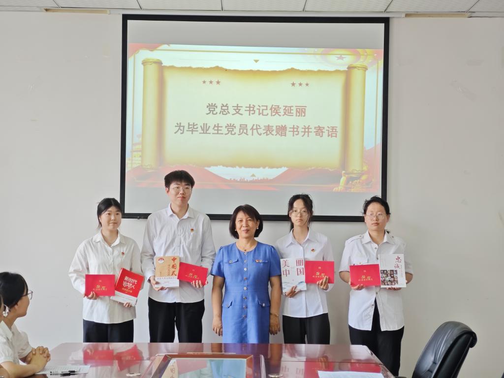 党总支书记侯延丽向毕业生党员赠书并寄语。她强调,大家要持续学习,在角色转化中做好应对社会挑战的准备,在家庭小事中担当责任以践行家国情怀,在专业实践中用行动积累热爱,勇于挑战困难,发挥党员先锋模范作用。