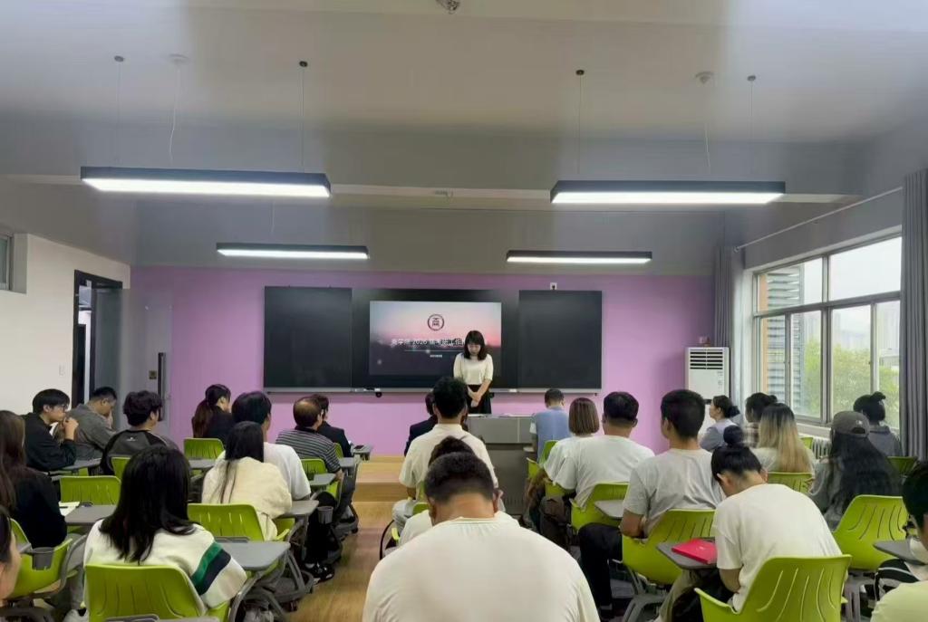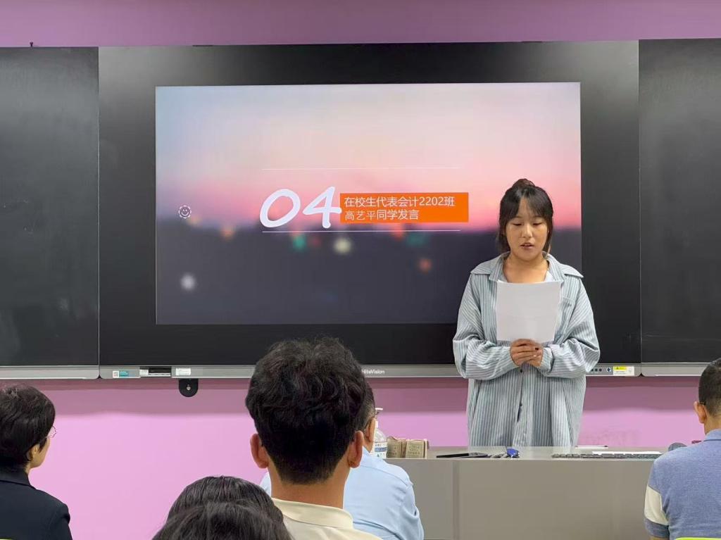 教师代表、会计学与审计学教研室韩心玥老师结合自身经历分享了考研历程与感悟。她表示,作为长期主义的个人规划,考研始终是本科生实现人生进阶的最优选择。往届研究生员工、原会计2101班马欣怡和会计2002班葛佳瑶受邀在线发言,她们勉励备考同学坚定目标信念,做好复习规划,以日有所进的心态奋力考取理想院校。备考员工代表、会计2202班高艺平作表态发言。她表示,选择考研就是选择延迟满足,愿意与所有备考同学一起以扎实的复习换取最后的胜利。最后,公司外请考研讲师马回峰从考前、考中、考后三个阶段为考研同学列出了时间表与任务书,并重点解读了择校等热点问题。