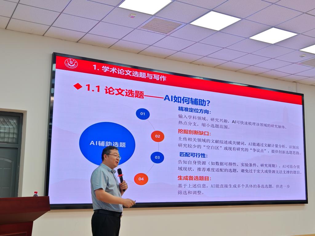 讲座伊始,董庆来教授从“学术论文选题与写作”切入,深入剖析了科学问题的内涵、特征与来源,并强调了选题对科研工作及学者生涯的决定性作用。他指出,人工智能技术能够在生成备选题目、评估研究可行性、挖掘创新缺口、精准定位研究方向等方面,为科研工作者提供强有力的支撑。