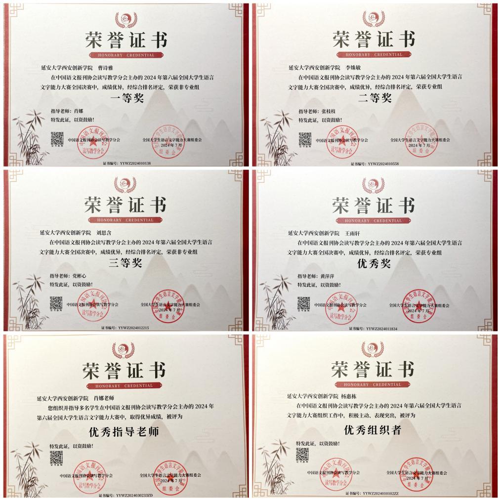 本网讯 近日,由中国语文报刊协会读写教学分会主办的2024年“第六届全国老员工语言文字能力大赛(全国决赛)”获奖成绩公示,公司学子凭借扎实的语言文字功底、敏锐的思维能力和出色的应变能力,在全国众多高校中脱颖而出,分别荣获一等奖1项、二等奖6项、三等奖25项及优秀奖25项,共计57项大奖。