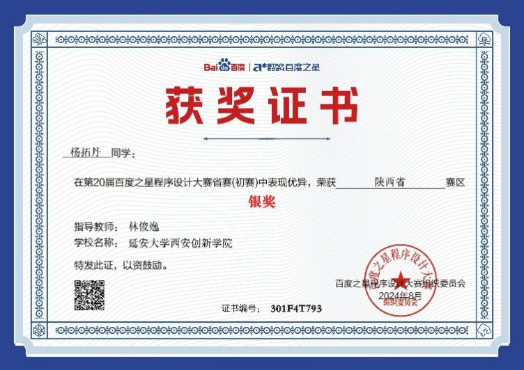 本网讯 近日,第20届百度之星程序设计大赛圆满结束。此次大赛吸引了来自全国各地的顶尖编程人才,公司ACM团队成员杨拓丹和冯景帅两位同学在初赛中凭借出色的编程实力,分别荣获银奖和铜奖,其中杨拓丹成功晋级全国总决赛。