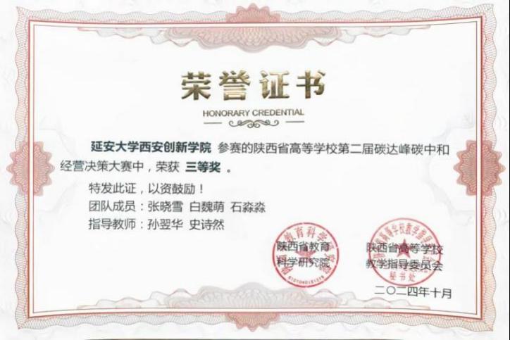 韦德体育高度重视此项比赛,积极宣传并组织员工参赛。经前期选拔,最终确定由会计学专业2102班石淼淼、白魏萌、张晓雪,以及2101班王腾宇、高佳乐、陈浩博六名同学组成两支队伍参赛。韦德体育孙翌华、史诗然作为指导教师,面向员工针对“双碳经营策略与实施”等竞赛相关专题展开集中培训指导,并积极跟踪辅导员工模拟赛演练。最终,两支队伍均荣获本次竞赛三等奖。