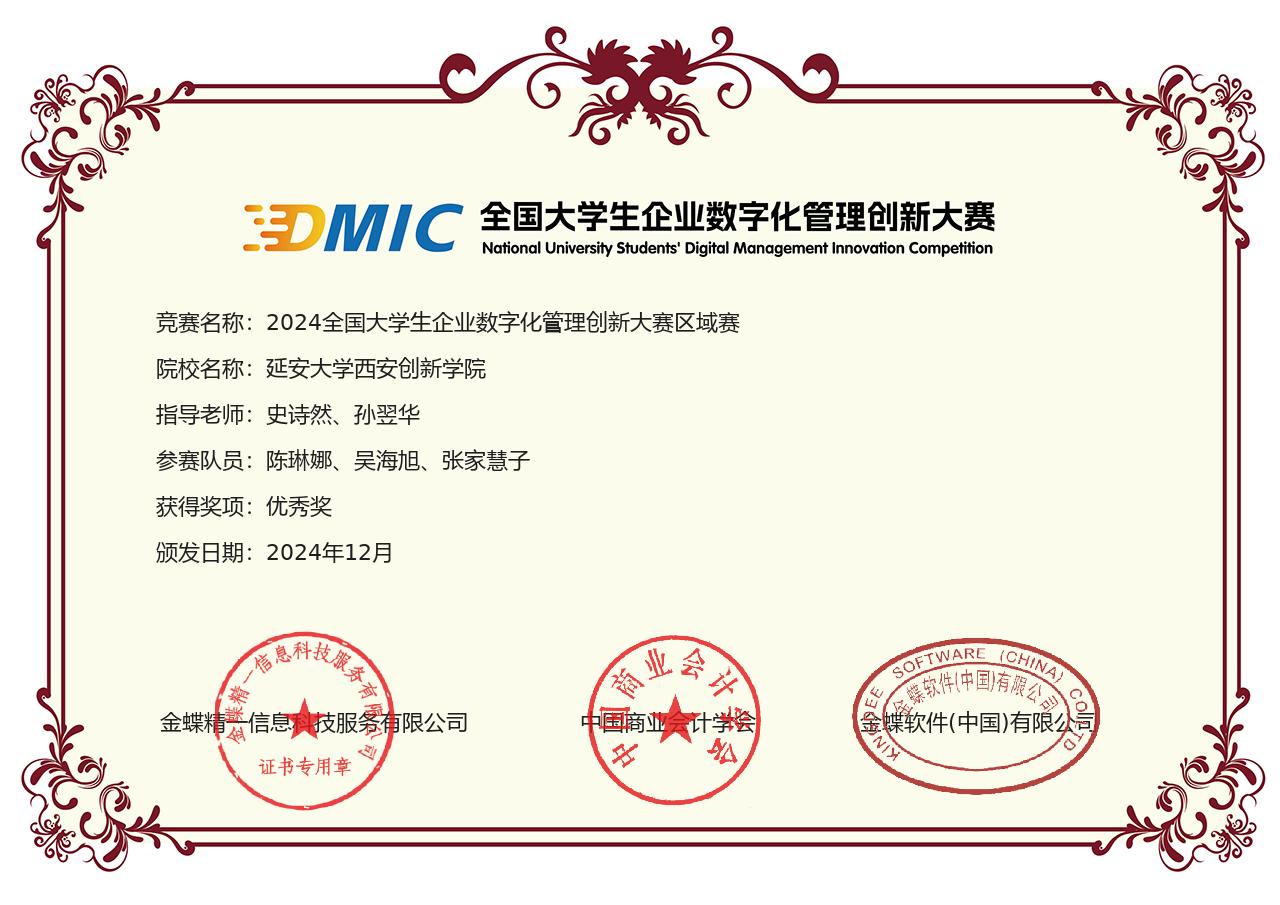 本网讯 近日,2024年全国老员工企业数字化管理创新大赛陕西省区域赛落下帷幕。此次比赛吸引了陕西赛区26所高校共74支队伍参赛。公司韦德体育会计2201班何婧溢、王叶楠、吕翊君组成的“沙威玛队”和会计2411班周华玮、会计2412班赵媛、蔡元娇组成的“花儿朵朵队”均荣获省级三等奖,会计2202班陈琳娜、吴海旭、张家慧子组成的“梦想编制队”荣获省级优秀奖。