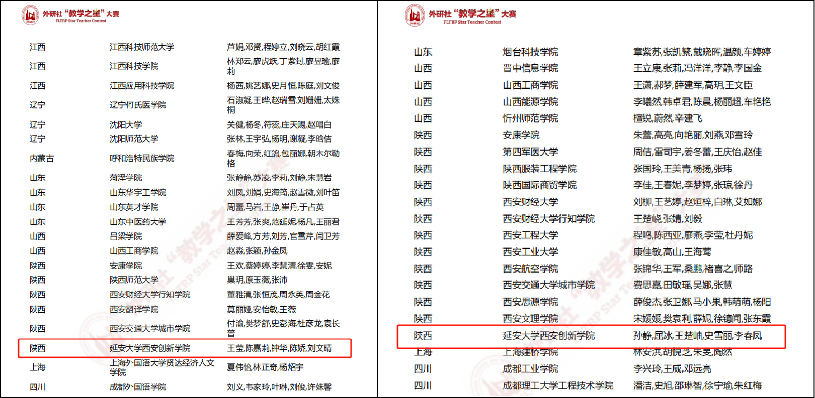 本网讯 近日,2025年外研社“教学之星”大赛全国复赛获奖结果揭晓。公司国际公司教师王莹、陈嘉莉、钟华、陈娇、刘文晴组成的团队,以及孙静、屈冰、王楚岫、史雪丽、李春凤组成的团队凭借扎实的教学功底与新颖的教学设计,荣获英语专业组二等奖和大学英语组二等奖。