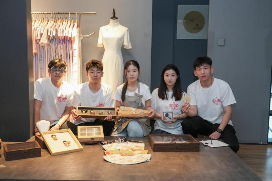 团队以“非遗+潮流+科技”破题,走访盘扣技艺传承人,学习盘扣制作技艺,通过创新打破传统与现代的隔阂,使盘扣成为“可触摸、可使用、可传播”的文化载体,让老手艺以新姿态融入现代生活。