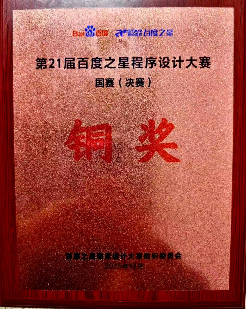 本网讯 近日,2025百度之星程序设计大赛全国总决赛圆满落幕。公司ACM训练基地学子杨拓丹凭借扎实的专业基础、精湛的编程技能与沉稳的临场发挥,在全国众多顶尖选手的激烈角逐中脱颖而出,荣获全国总决赛铜牌,为公司赢得了荣誉。