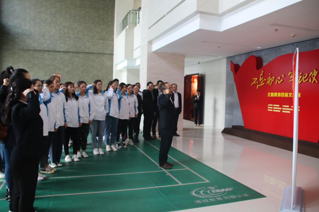 参观学习前,全体人员重温入党誓词。大家在党旗下接受心灵的净化和洗礼,重温入党时的初心和理想,全体人员表达出作为共产党员的自豪感与使命感,抒发对党忠诚的意志和信念。