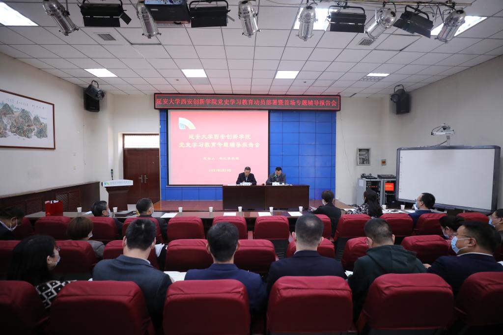 动员部署会后,陕西省委党校教授毕远佞作了题为《中国共产党的百年辉煌与宝贵经验》的首场专题辅导报告。报告以讲述“陕西”为历史背景的党史故事为切入点,从中国共产党百年的奋斗历程,党百年探索实践的基本经验,学习党的历史、牢记初心使命三个方面,结合具体历史人物和历史事件,详细阐述了中国共产党的百年光辉历程、初心和使命。